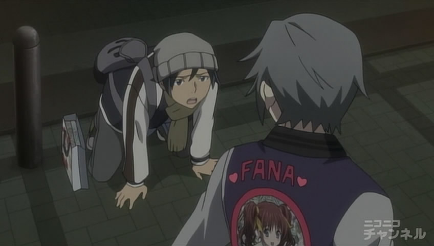 Later, Kyousuke is asked to her room for "Final Life Counseling" which is buying her 2 imouto games(eroge) that released at midnight in Akihabara. Finally, he got the games and supposedly, he gets in a train and return safely, but in this episode.....